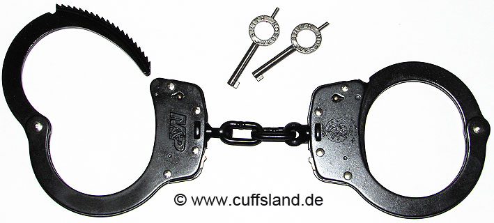 Diese Variante der berühmten S&W M-100 ist nicht vernickelt sondern hat eine geschwärzte Oberfläche, welche aus sehr dauerhaften Melonit besteht. Ansonsten sind die Fesseln absolut identisch zum zuvor gezeigten Standard-Modell. Bezeichnung: 100MP